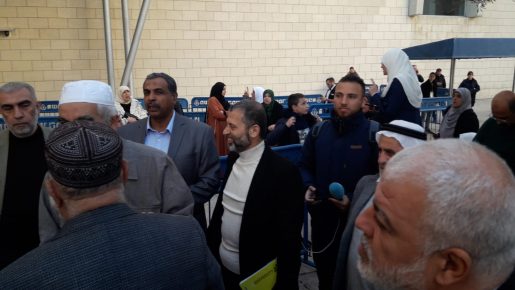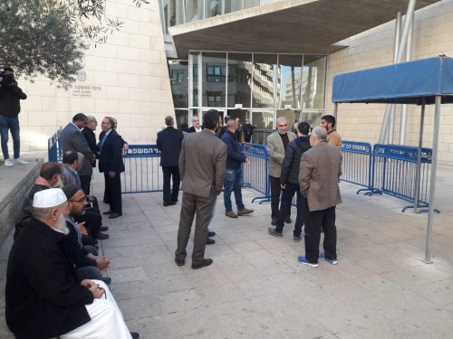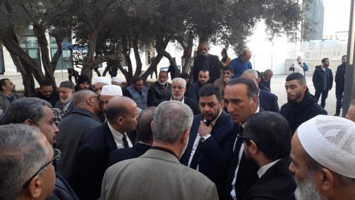 حشد غفير يتواجد في محيط مبنى المحاكم بحيفا، إسنادا للشيخ رائد صلاح في جلسة محاكمته.