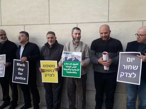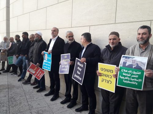 هذا وقرر عشرات المتضامنين مع الشيخ رائد صلاح من أمام مبنى المحاكم في حيفا، مقاطعة الجلسة بعد قرار إسرائيلي بالسماح فقط لعشرين شخصا بحضورها.