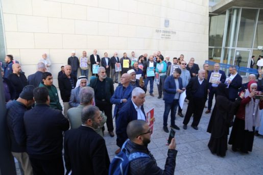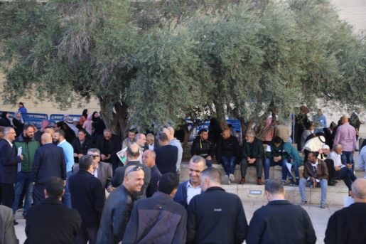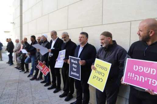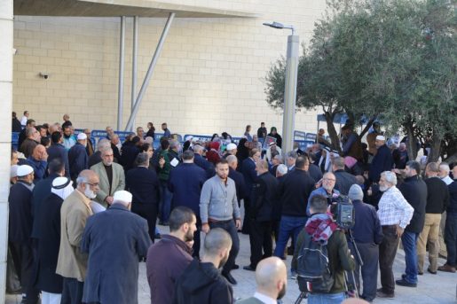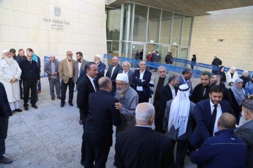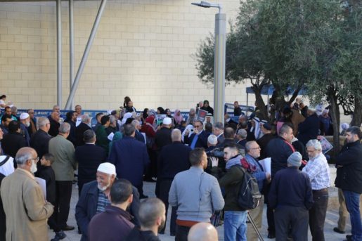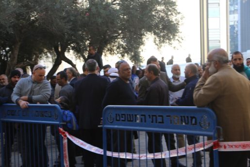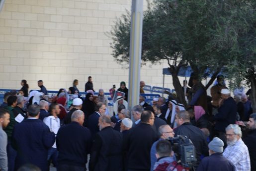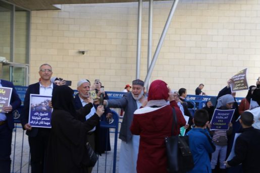 وشهد محيط مبنى المحاكم في حيفا، حضورا حاشد من القيادات والأهالي من مختلف البلدات العربية في الداخل الفلسطيني، بعد مقاطعة الجلسة داخل القاعة، احتجاجا على قرار الشرطة وإدارة المحاكم السماح فقط لعشرين شخصا، بحضور الجلسة.