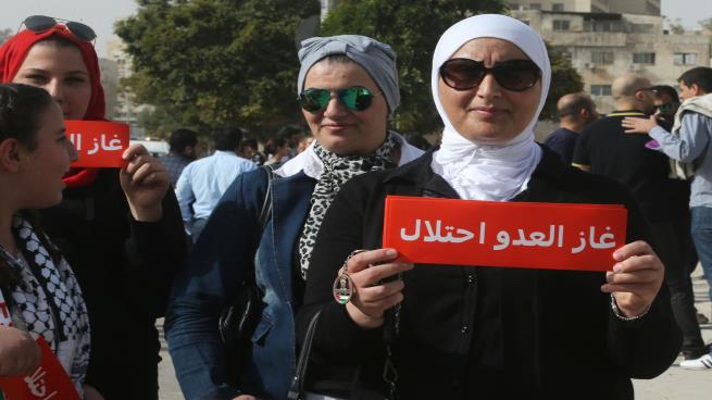 وفي سياق متصل، نظمت الحملة الوطنية لإسقاط اتفاقية الغاز مع المؤسسة الإسرائيلية، وقفة احتجاجية مساء أمس السبت على الدوار الرابع أمام مبنى رئاسة الوزراء في العاصمة عمان شارك فيها مواطنون وفعاليات حزبية وشعبية ونقابية، مطالبين بمساءلة كل من له يد بتوقيع وتنفيذ صفقة الغاز مع الكيان الإسرائيلي.