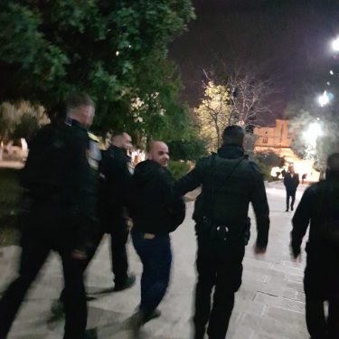 كما اعتقلت قوات الاحتلال الشاب عمر محيسن أثناء خروجه من مصلى باب الرحمة، بعد أداء صلاة العشاء بداخله، واحتجزت هويات مصلين عند باب حطة، بينهم الشابين رامي الفاخوري وأحمد الشاويش.
