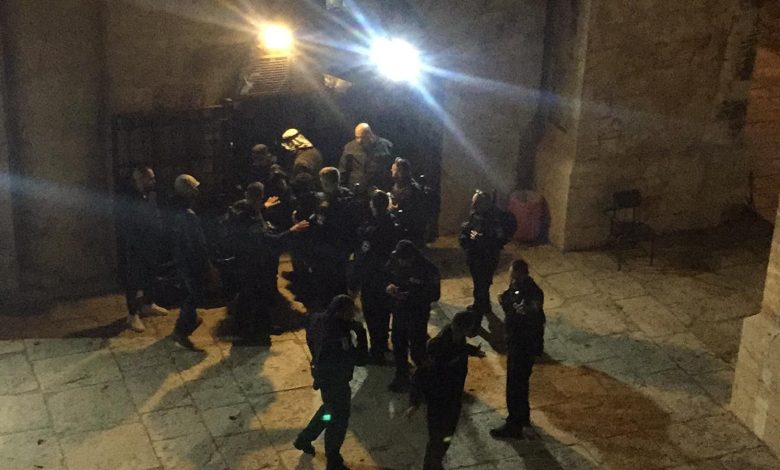 الاحتلال يعتدي على المصلين في محيط مصلى باب الرحمة ويعتقل شابين