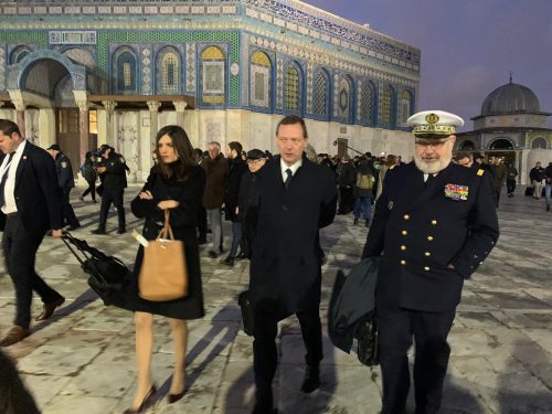 وطلب ماكرون من قوات الاحتلال احترام المكان وقوانينه، وخاطب أحد عناصر الاحتلال قائلا: “لم يعجبني ما قمت به أمامي.. أخرج.. أنا آسف ولكننا نعرف القوانين، لا يحق لأي أحد أن يستفز شخصا آخر، فلنلتزم بالهدوء، رجاء احترموا القوانين التي لم تتغير منذ قرون، فليحترم الجميع القوانين”.