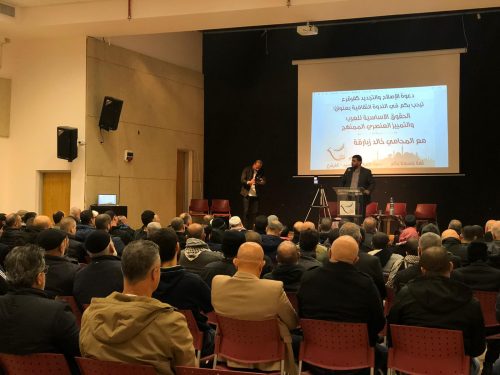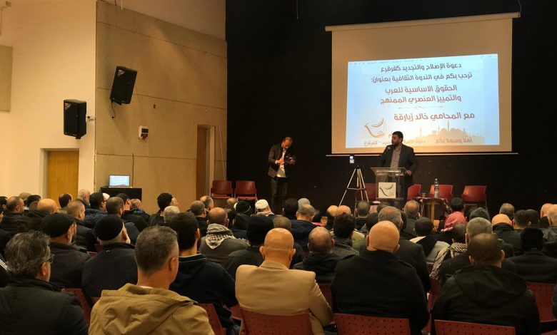 بمشاركة حاشدة، نظمت دعوة الإصلاح والتجديد كفر قرع ندوة ثقافية بعنوان الحقوق الأساسية للعرب والتمييز العنصري الممنهج استضافت فيها المحامي خالد زبارقة.
