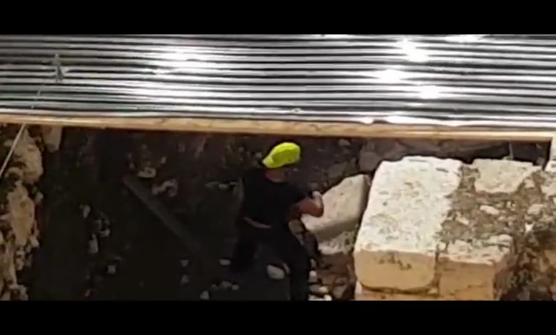 قام عمال سلطة آثار الاحتلال الإسرائيلي الخميس، بحفر الأساسات بالجدار الغربي الملاصق لمتحف القصور الأموية بالقدس المحتلة، وقام العمال بتكسير الحجارة التاريخية.