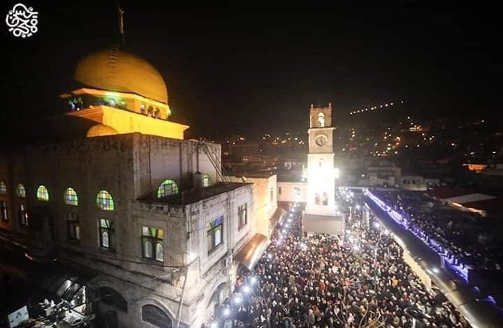 وفي موعظته التي نقلت مباشرة على شاشات عرض كبيرة في نابلس، بعث الداعية محمد راتب النابلسي بالتحية لأهل فلسطين وبيت المقدس.