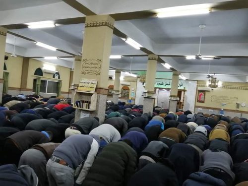 كما كان المصلون بالمئات في مسجد جامعة اليرموك في إربد وكذلك في مسجد آمنة بنت وهب في الرصيفة.