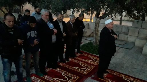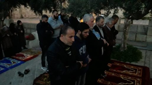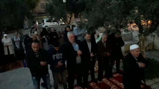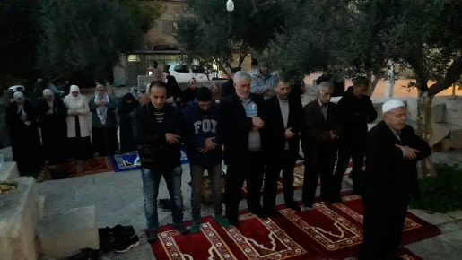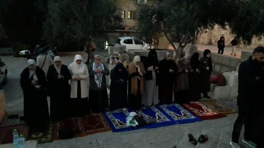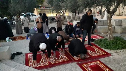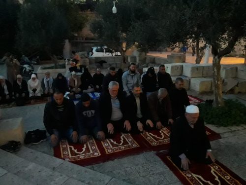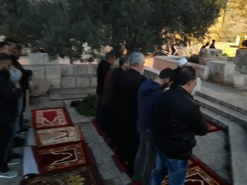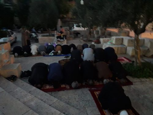 رابط عدد من المبعدين والمبعدات، إسرائيليا، عن المسجد الأقصى المبارك، عند باب الاسباط وأدوا الصلاة في المكان وتناولوا إفطارهم بعد صيام النافلة.