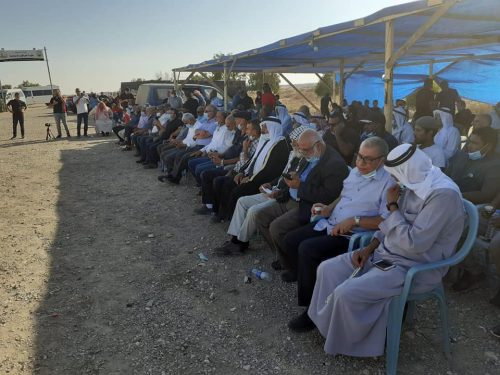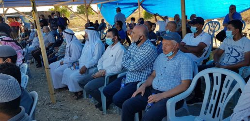 وقال بركة، إن مجتمعنا يحتاج الى رص الصفوف، ومنع تغلغل الظواهر التي تفتك به، وخاصة الجريمة والعنف المجتمعي، وما يرافقها من ظواهر إجرامية، مثل انتشار السلاح والخاوة والسوق السوداء وجرائم القتل. وقال إنها باتت تضرب كل مجتمعنا. وهناك غض طرف مقصود من المؤسسة الحاكمة، لضرب مجتمعنا من الداخل، ليكون أضعف في مواجهة كل سياسات التمييز العنصري، وسياسات الاقتلاع والاحتلال والاستيطان. وقال بركة، حينما نقول إن قضية الأرض والمسكن، فإن هذه قضية مشتقة من قضيتنا الوطنية العامة، والمؤامرة الصهيو أميركية المسماة “صفقة القرن” تحمل كل ملامح الهجوم الشامل على شعبنا الفلسطيني في كامل أماكن تواجده، فهي تشمل التلاعب بالحدود مع منطقة المثلث، لقطعها عن الحيز العام لوطنها، وتهويد القدس، والقضاء على قضية المهجرين من وطنهم، فحسب الاحصائيات، فإن عدد المهجرين من النقب وحده، ويقطنون اليوم في الأردن وصحراء سيناء، يتجاوز المليون نسمة. وختم بركة موجها على الصمود الأسطوري لأهل العراقيب والشيخ صيّاح الطوري أبو عزيز.