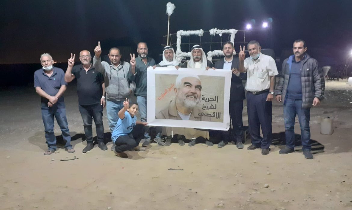 وقال: من هنا من أرض العراقيب الصامدة الأبيّة ومن أرض النقب الأشم، ها نحن على درب الوفاء نسير واليوم الثاني والستون حيث يقبع الشيخ رائد صلاح خلف قضبان سجن الظالمين ظلما وعدوانا، لم يكن يوما من الأيام الشيخ مجرما ولم يرتكب أي جريمة ولم يؤذي أي بشر، كما هو صاحب أمانة وصاحب عهد ومبدأ وحينما يكون السجن ظلما لتنحني القامات العالية لتنحني القامات التي لن تخضع إلا لله، ولن تركع إلا لله”.