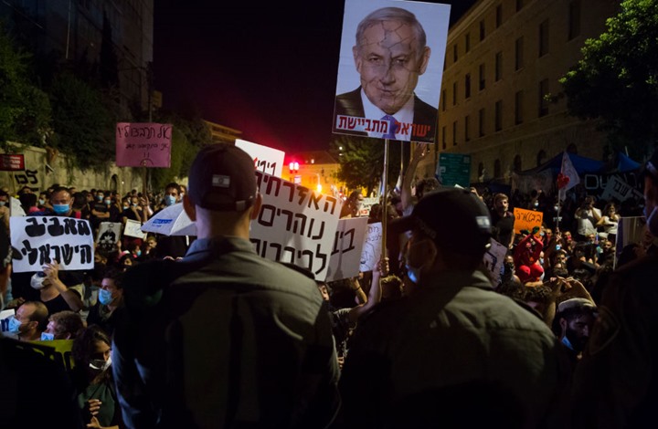 تجمع عدة آلاف من المتظاهرين أمام المقر الرسمي لرئيس الوزراء الإسرائيلي، بنيامين نتنياهو، في القدس المحتلة، ليل السبت، ضمن تحركات أسبوعية تجري كل سبت، منذ يوليو/ تموز، للاحتجاج على الإدارة الاقتصادية والصحية لجائحة “كوفيد-19” من طرف حكومة نتنياهو المتهم رسمياً بالفساد.