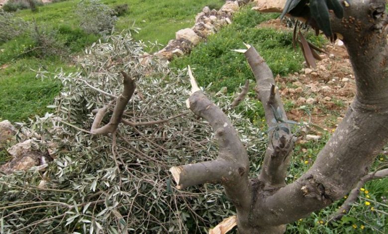 قطع مستوطنون، الليلة الماضية، أشجار زيتون في قرية كفر الديك غرب سلفيت.