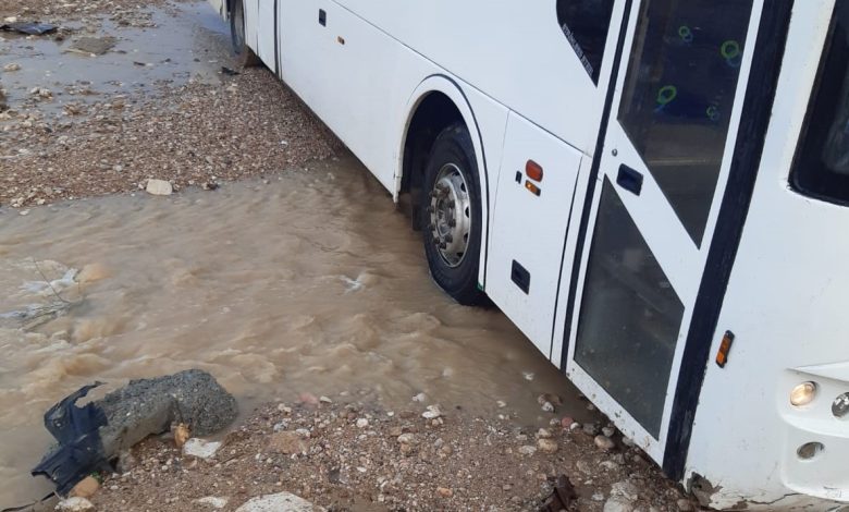 “خربة الوطن” في النقب: معاناة متواصلة والسيول تمنع معظم الطلاب من الوصول لمدارسهم