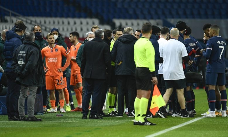 أعلن نادي “باشاك شهير” التركي انسحاب فريقه الأول لكرة القدم من مباراته أمام نظيره الفرنسي “باريس سان جرمان”، على أن تستكمل المباراة، مساء اليوم الأربعاء، من النقطة التي توقفت عندها، مع تغيير طاقم التحكيم الروماني.