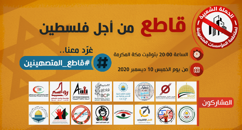 أطلقت أكثر من 15 مؤسسة في مناهضة التطبيع مع الاحتلال الإسرائيلي مشروعا لحملة مقاطعة المؤسسات التي دعتها ب”المتصهينة” تحت عنوان “قاطع من أجل فلسطين”.