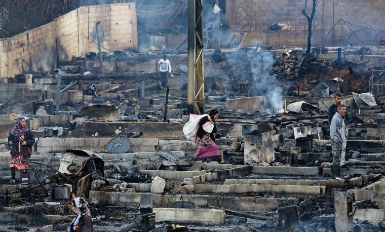 لبنانيون يحرقون مخيم للاجئين سوريين إثر «مشاجرة»