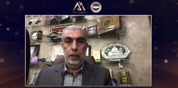 في حين ألقى الشيخ كمال خطيب، رئيس لجنة الحريات في الداخل الفلسطيني، كلمة للحفل عبر تقنية “البث المباشر”، وجاء فيها: “الاخوة والأخوات القائمين على مجلس إدارة وقف المرحوم محمد عاكف، الإخوة في مجلس أمناء وقف محمد عاكف، العائلة الكريمة الحضور جميعا السلام عليكم ورحمة الله وبركاته، نحييكم من هنا من أرض الإسراء والمعراج من رحاب القدس والمسجد الأقصى المبارك تحية الحب والإخوة التي جمع الله عزّ وجّل بيننا وبينكم من خلالها بقوله: (إنما المؤمنون إخوة)”.