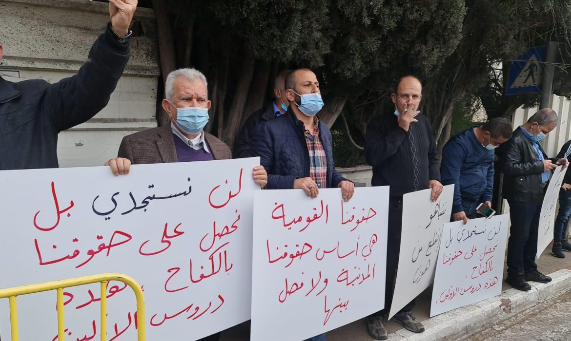 ورفع المتظاهرون الأعلام الفلسطينية ورددوا هتافات ضد نتنياهو والأحزاب الصهيونية، وسط حضور قوات معززة من الشرطة والقوات الخاصة التابعة لها.