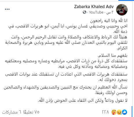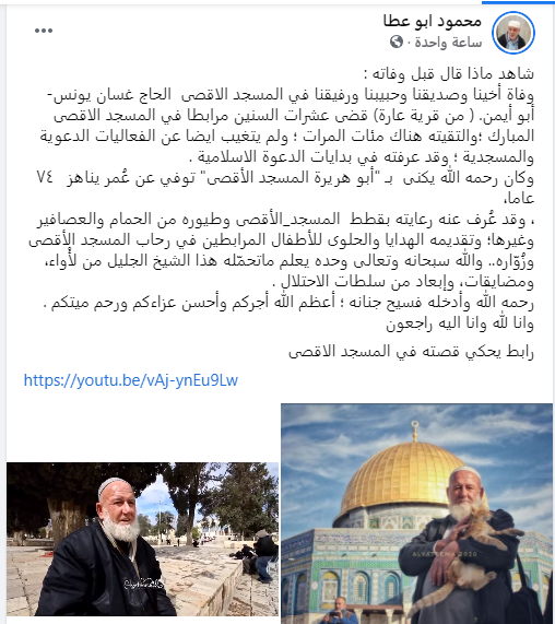 نعي واسع في مواقع التواصل لـ “أبو هريرات الأقصى” الراحل غسان رفقي يونس من بلدة عارة