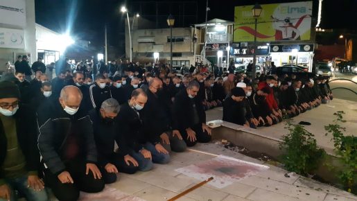 باعلام مضرجة بالدم: صلاة ومسيرة حاشدة تنديدًا بالعنف في باقة الغربية