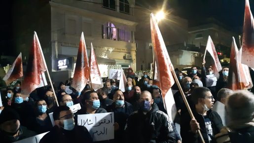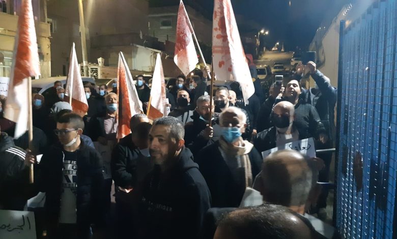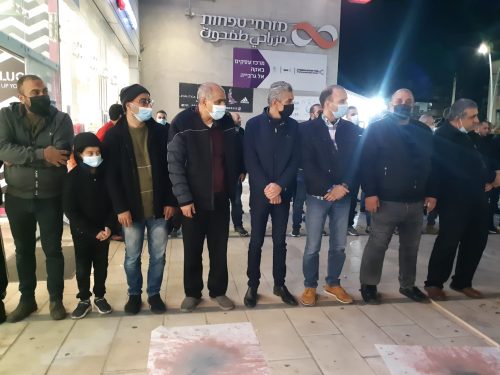 وقد تجمهرت الحشود امام مركز الشرطة في المدينة مطالبة بالتدخل السريع لوقف شلال الدم في المجتمع العربي. وقد رفع المشاركون اعلاما ملطخة بلون الدم.