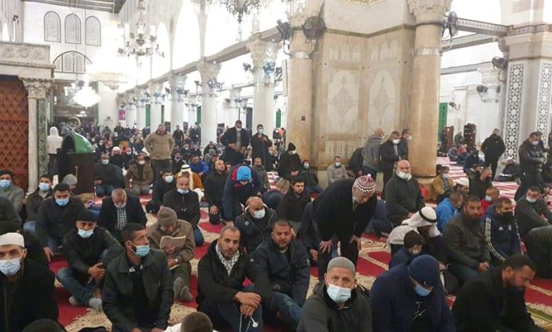 ومنذ ساعات الفجر الأولى احتشد المواطنون ومنهم عائلات على بوابات الأقصى لأداء الصلاة بمشاركة الأطفال والنساء؛ تأكيدا على الترابط الروحي بين الفلسطينيين والحرم القدسي ولإيصال رسالة للاحتلال برفض مخططات التهويد والضم.