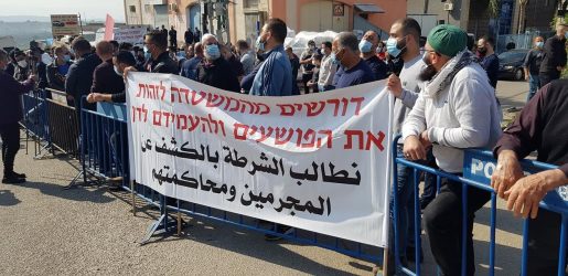 طمرة: المئات يحتشدون امام مبنى الشرطة تنديدًا بالعنف وتواطؤ الشرطة