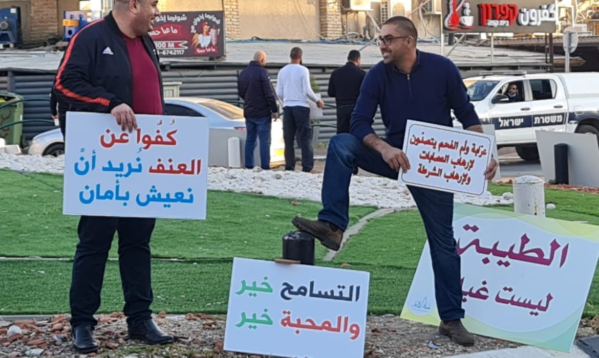 كما حمل المتظاهرون لافتات منددة بالجريمة، وأخرى اتهمت الشرطة بتفشي جرائم القتل والسلاح غير المرخص في المجتمع العربي.