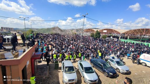 في صرخة قطرية فلسطينية في وجه الظلم والطغيان، ولتحميل الحكومات الاسرائيلية مسؤولية تفشي جائحة العنف وفوضى السلاح في المجتمع العربي، وصل الالاف اليوم الجمعة الى مدينة ام الفحم للمشاركة في صلاة الجمعة والمظاهرة الاحتجاجية ضد العنف والجريمة. وذلك رغم التضييقات واغلاق الطرق المؤدية الى المدينة، ما ادى الى تأجيل اقامة الصلاة لانتظار كافة المشاركين.