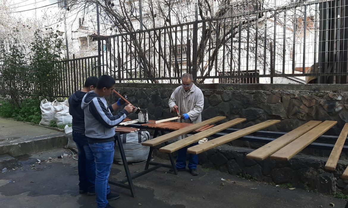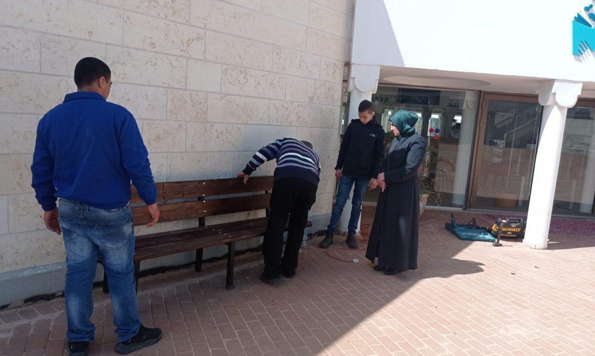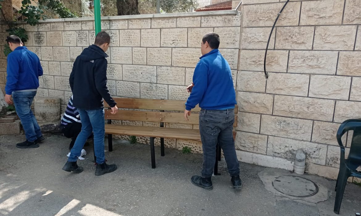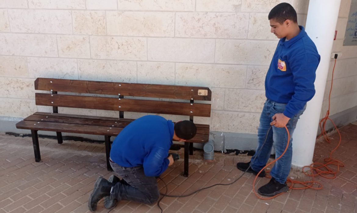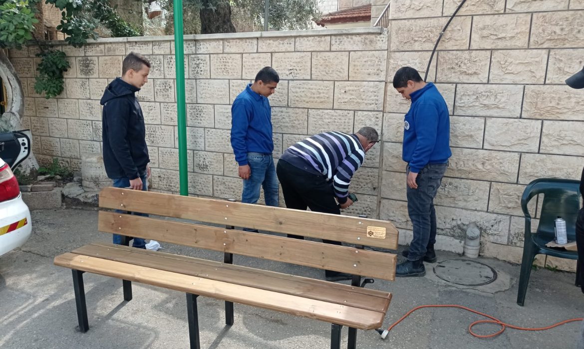 فقد تم وضع مقاعد تم تصنيعها في ورشتيّ الحدادة والنجارة في المدرسة على يد الطلاب، وتركيب مقعد في ساحة الانتظار في حي عين جرار، ومقعد آخر تم تركيبه في ساحة المكتبة العامة، ومقعد ثالث تم تركيبه أمام بنك البريد المركزي في الشارع الرئيس، ومقعد رابع تم تركيبه أمام فرع بنك “مركنتيل” في الشارع الرئيس.