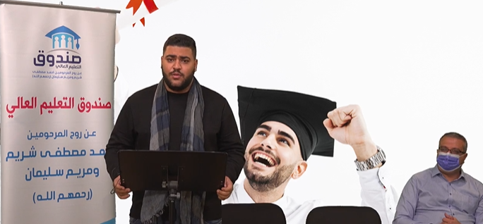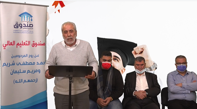 ثم كانت الكلمة الختامية للطلاب المستحقين للمنحة، ألقاها باسمهم الطالب فادي زعي، وقال: “أتقدم بأجمل التهاني والتبريكات لكل الطلاب الذين حصلوا على المنحة الدراسية من هذا الصندوق الخيري الطيب، صندوق المرحومين أحمد شريم ومريم سليمان، واتقدم باسم الطلاب بالشكر والامتنان على هذه المنحة وعلى هذا الصندوق وعلى هذا اللقاء”.