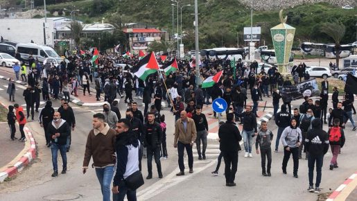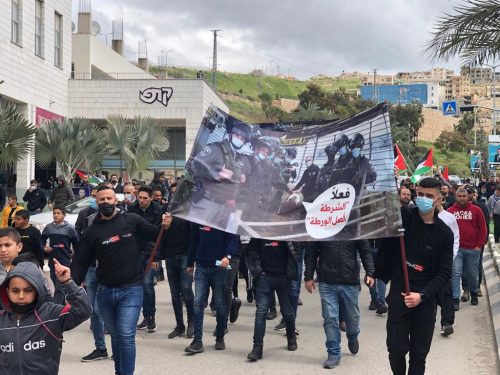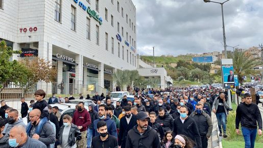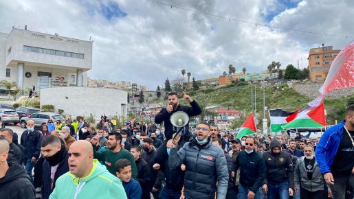 رغم الامطار: مظاهرة حاشدة تغلق شارع 65 عند مدخل ام الفحم