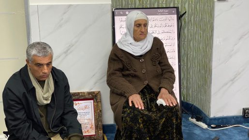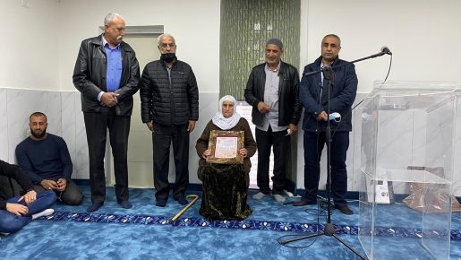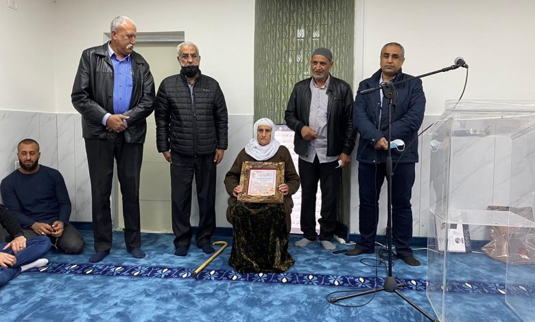 وبدأ الحفل بتلاوة عطرة من القرآن الكريم قدمها الشيخ محمد أبو زرقة (أبو مسلم)، ثم تبعها فقرة تكريم للحاجة نظمية عزب وتم منحها شهادة شكر وتقدير على عملها المبارك.