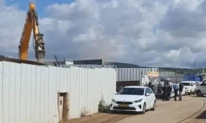 اٌقدمت آليات وجرافات السلطات الإسرائيلية على هدم مخازن تجارية بذريعة البناء دون ترخيص في قرية دبورية، صباح اليوم الأحد.