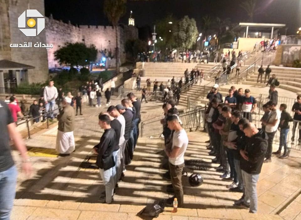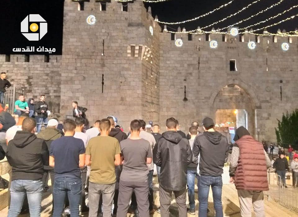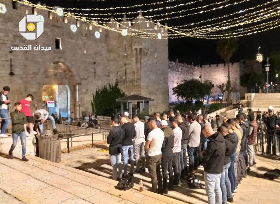 فلسطينيون يؤدون التراويح في ساحة باب العامود والاحتلال يحاول تفريقهم