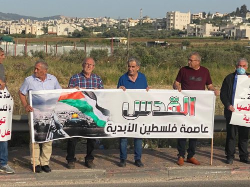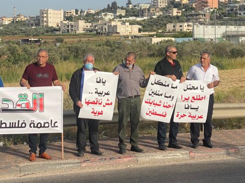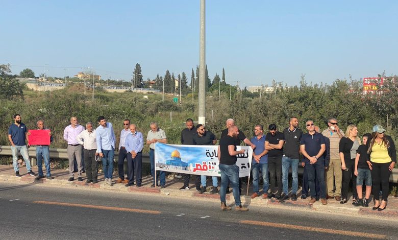 وقفة على مفرق الناعمة احتجاجًا على الاعتداءات الاسرائيلية في القدس ويافا