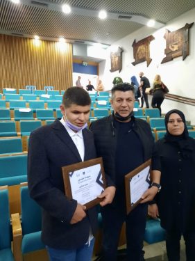 وخلال تكريم الفائزين توجه الأستاذ توفيق سليمان، والد الطالب محمد، في الصف الحادي عشر، بالشكر الجزيل للمبادرين لهذه المسابقة، وقال في خضم حديثه: “محمد هو النور الذي يضيء علينا بيتنا”