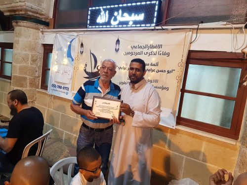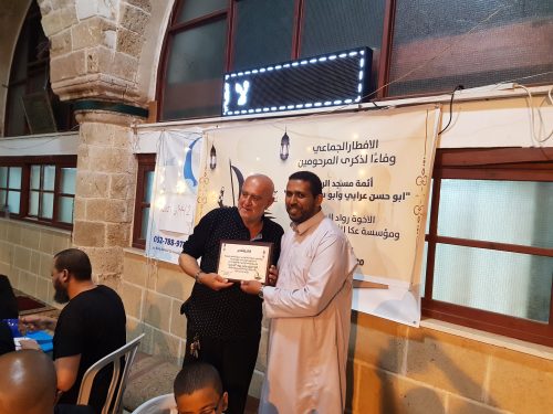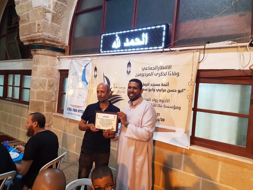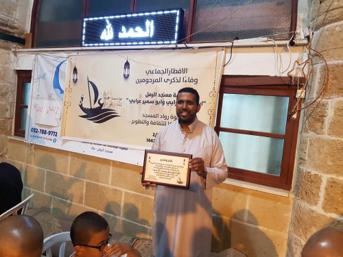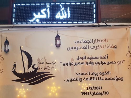 وفي سياق متصل، نُظم في مسجد الرمل في مدينة عكا، أمس الأحد، إفطارا رمضانيا تكريما لذكرى الراحلين أئمة المسجد السابقين (أبو حسن عرابي وأبو سمير عرابي)، كما وجرى تكريم السيد عرابي عوف (أبو راني) لنشاطه في العمل الإغاثي وكفالة الأيتام، وتكريم السيد فضل مرسي لنشاطه في تسيير حافلات إلى المسجد الأقصى المبارك.