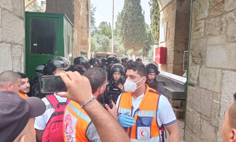 قال الهلال الأحمر الفلسطيني إن مئات الإصابات وقعت في أروقة المسجد الأقصى المبارك جراء قمع قوات الاحتلال الإسرائيلي للمرابطين والمقدسيين المنتفضين.