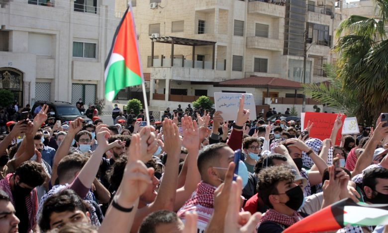 ويشهد الأردن منذ ما يزيد عن أسبوع فعاليات احتجاجية داعمة لفلسطين، فيما يطالب المشاركون بالفعاليات حكومة بلادهم باتخاذ موقف قوي إزاء ما يحدث في الأراضي المحتلة.