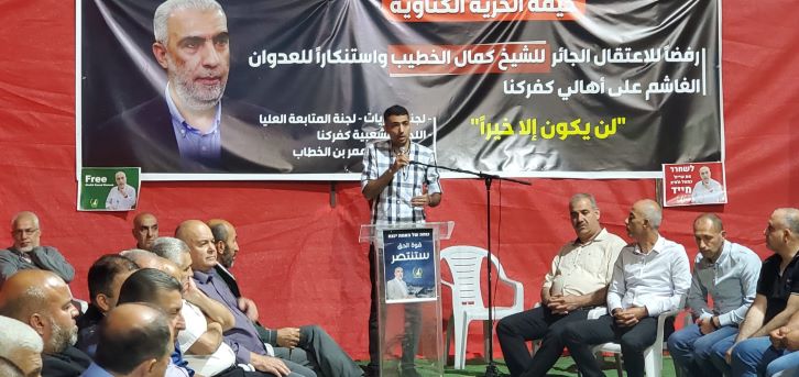 كما أكد المتحدثون أن الهجمة الشرطية الاستفزازية على شباب كفركنا خلال اعتقال الشيخ كمال، جاءت كمحاولة فاشلة لكسر شوكة كفركنا التي قدّمت ولا تزال تقدم تضحيات كبيرة في مسيرة نضال الفلسطينيين للمطالبة بحقوقهم ومقاومة قمعهم وتشويه هويتهم والاستيلاء على ما تبقى من أرضهم.