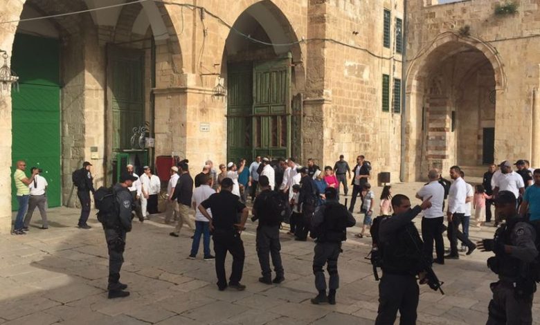 وتواصل قوات الاحتلال تعزيزاتها العسكرية المشددة في المسجد الأقصى والبلدة القديمة لتأمين اقتحامات المستوطنين للمسجد.