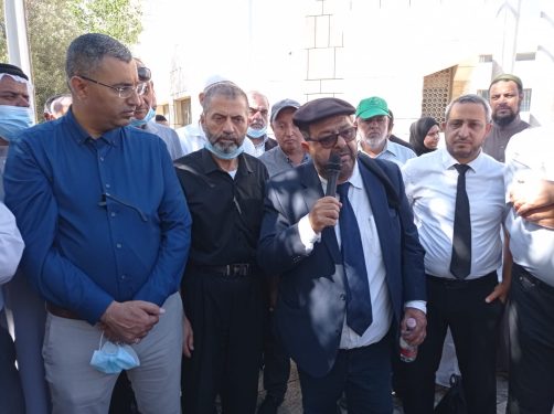 وقال إن “يحاكمون الشيخ كمال بسبب تأثيره الكبير على شعبنا ومواقفه، لذلك لا يكتفون بالمحاكم كما اليوم بقاض عادي بل يجلبون رؤساء المحاكم كما اليوم وفي المحكمة المركزية في حيفا”.