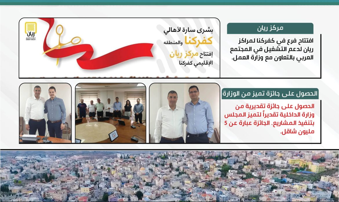 يشار إلى أن المجلس المحلي اصدر تقريرًا مصورًا تضمن المشاريع والإنجازات التي تحققت خلال فترة إشغال الدكتور يوسف عواودة رئاسة المجلس المحلي.