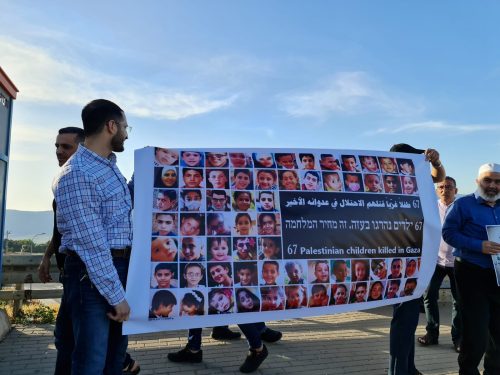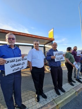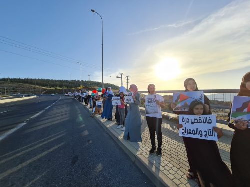 ورفع المشاركون لافتات تندد بالاعتداءات الاسرائيلية العنصرية على كل فلسطيني، وتؤكد ان الاقصى والقدس هما قلب القضية.