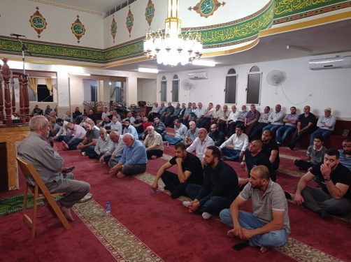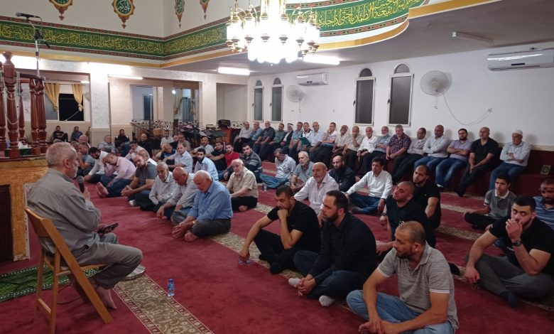 واستهل اللقاء بآيات من القرآن الكريم تلاها الشاب محمد شحادة، فيما تولى العرافة الشيخ كفاح موعد، وقدم الشيخ عبد الرؤوف أبو الهيجاء، إمام المسجد، محاضرة تحدث فيها عن حكمة الله من البلاء والمحن.