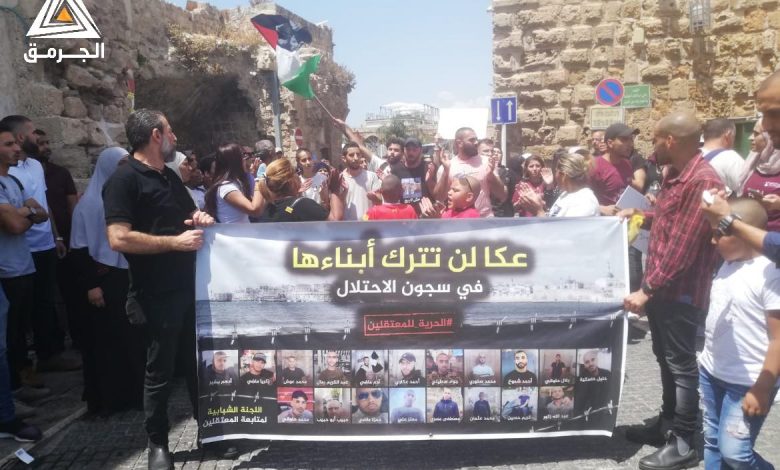 ذكر المتظاهرون أسماء شبان معتقلين في السجون الإسرائيلية خلال هتافاتهم في رسالة للتأكيد على عدم خذلان أهالي عكا لأبنائهم المعتقلين في السجون، وفي مقدمة تظاهرتهم رفعوا لافتة كُتب عليها “عكا لن تترك أبناءها في سجون الاحتلال”.