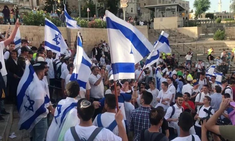 توصلت شرطة الاحتلال الإسرائيلي في القدس إلى اتفاق مع منظمي “مسيرة الأعلام” المزمع تنظيمها يوم الثلاثاء المقبل على إقامة “رقصة للأعلام” في منطقة باب العامود، على أن تمر المسيرة من هناك باتجاه باب الخليل حيث ينقسم المشاركون إلى قسمين في طريقهم إلى حائط البراق، في حين حذرت فصائل المقاومة الفلسطينية من المساس بالأقصى.