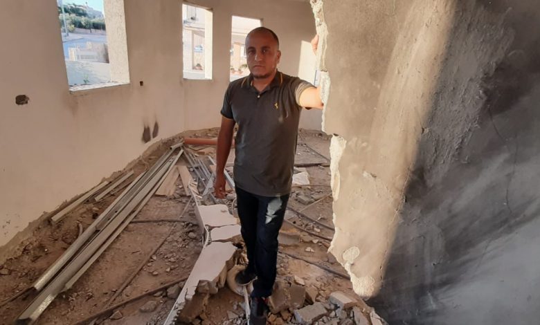 وأضاف أن “هذا البيت مكون من ثلاثة طوابق، وقد جهزنا الطابق الأول والساحات للسكن فيه بعد شهر، ويوم أمس كنا نخطط، أنا وزوجتي منى، الذهاب إلى البيت لترتيب أغراض قمنا بشرائها، إلا أن هناك مجهولين يصرون على المس بنا”.