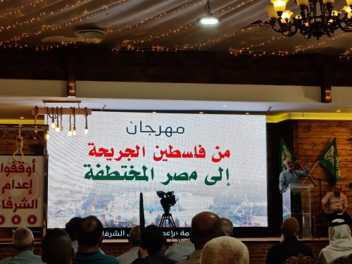 انطلقت في قاعة “ميس الريم” في قرية عرعرة بالمثلث الشمالي، فعاليات مهرجان “من فلسطين الجريحة إلى مصر المختطفة” والذي يقوم عليه اتحاد الأئمة في الداخل الفلسطيني على شرف الذكرى الثانية لاستشهاد الرئيس المصري محمد مرسي.
